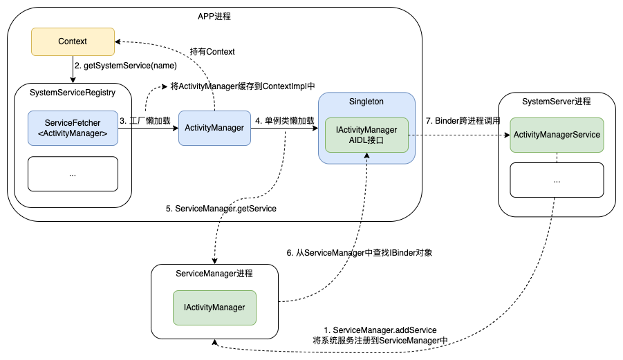 getSystemService拿到的ActivityManager是一个包装类,真正跨进程通信的是IActivityManager对象。